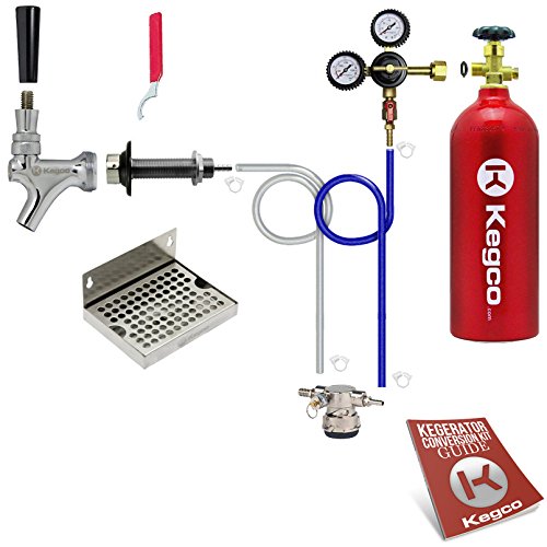 Do you have a refrigerator or freezer that you’d like to convert into a draft beer dispenser, but its low interior height will not allow you to tap the kegs you want with a standard keg coupler? Kegco’s Low Profile Deluxe Door Mount Kegerator Conversion Kit is here to help! It features a high-quality Perlick low profile D system keg coupler that is shorter than a standard lever handle coupler, reducing the amount of vertical space you need while still allowing you to tap all of your favorite North American store bought keg beers. This conversion kit doesn’t just easily solve your height restriction problem, it also includes deluxe features like a lightweight 5 lb. aluminum CO2 tank, a premium double gauge regulator, and a stainless steel wall mount drip tray to make the rest of the dispensing process as convenient as possible. We’ve also included a detailed instruction guide for a hassle-free conversion, and our helpful product specialists are just a phone call away at 1-800-710-9939 with any questions you might have along the way.PREMIUM DUAL GAUGE REGULATOR: Easily measure PSI and CO2 volume and adjust CO2 output pressure using this reliable and simple-to-use Kegco 962 Premium Dual Gauge Regulator. It has a T-style adjustment valve that can be adjusted by hand, and features a non-adjustable “shut-down” built into the body of the regulator. Rubber gauge protectors help prevent damage to the gauges for added durability.