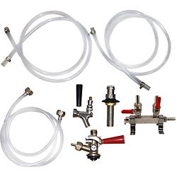 Have two beers on tap! This kit includes all of the kegerator supplies you need to upgrade your converted fridge from a single tap to a two-beer line system. Conversion kits like this one are easy to install. Simply fit the included shank through the refrigerator door and connect your beer line and faucet. Attach the CO2 line from your regulator to the two-way CO2 distribution bar, connect both air lines to the keg couplers and you’re ready to enjoy twice the beer! In stock and ready to ship. Includes: (1) black knob faucet handle. (1) chrome faucet head (brass lever). (1) 5″ shank for draft beer system. (1) beer line jumper 5′ (w/ connectors). (1) US Sankey keg coupler with lever handle. (2) air line jumper 5′ (w/screw clamps). (1) 2-way CO2 distribution bar with shut off valves.Upgrades your converted fridge from a single to a two-beer system.
